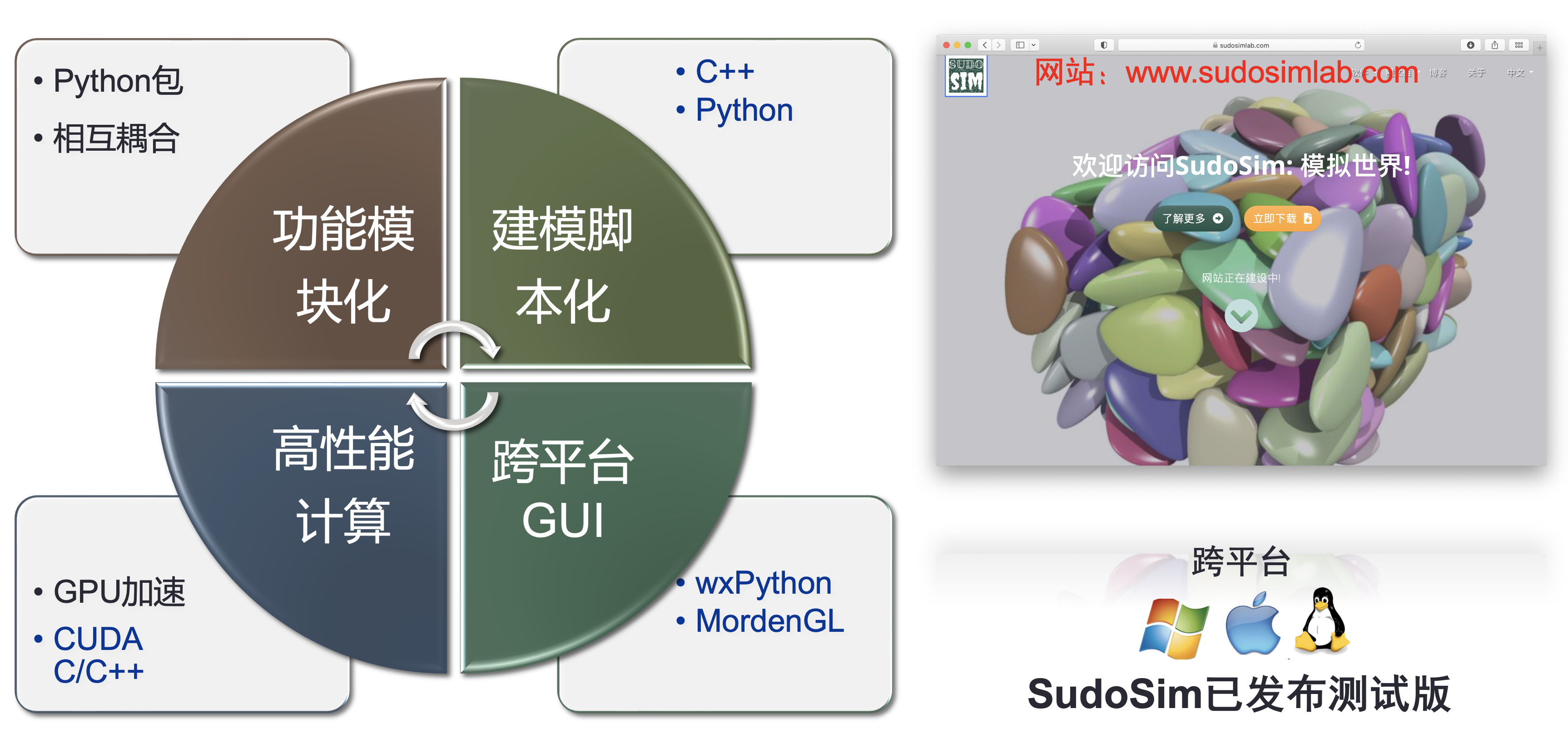 SudoSim平台的研发理念是:功能模块化、建模脚本化、高性能计算和跨平台GUI。