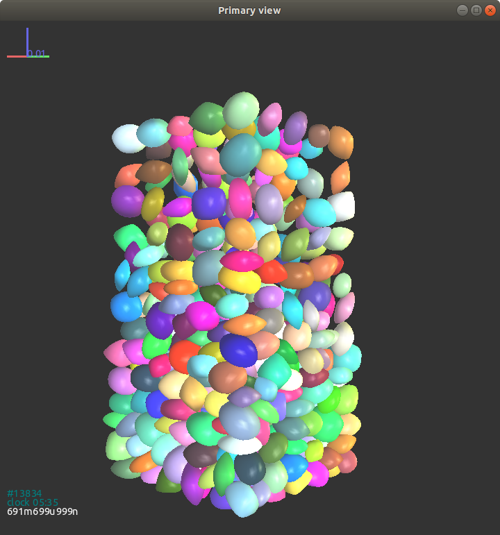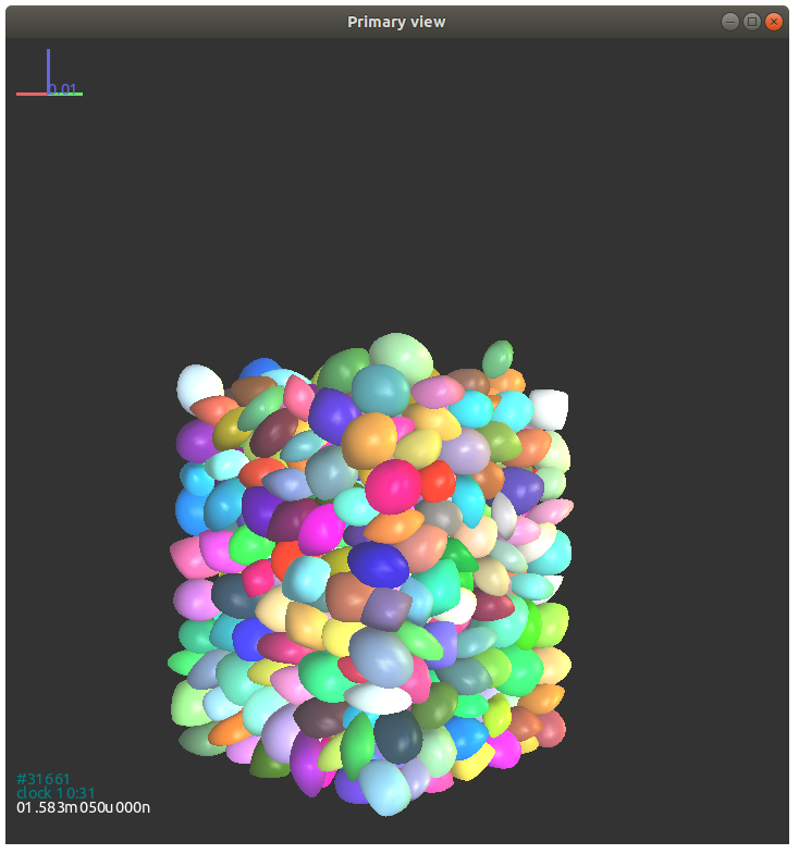这里我们给出了超椭球在立方体盒子中重力堆积的模拟示例。